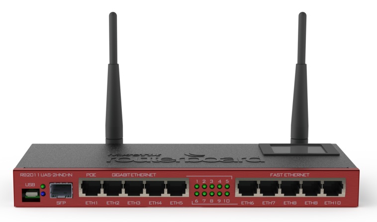 Маршрутизатор c 5 LAN-портами 10/100/1000Base-TX с поддержкой PoE(14Вт) +5 LAN-портами 10/100Base-TX + точкой доступа WiFi 802.11b/g/n до 300Мбит/с +1хUSB + 1 WAN-портом 1000Base-FX SFP MikroTik