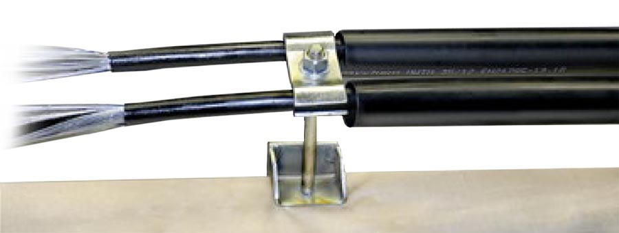Струбцина обеспечивает крепление и удержание в неподвижном положении до двух кабелей.