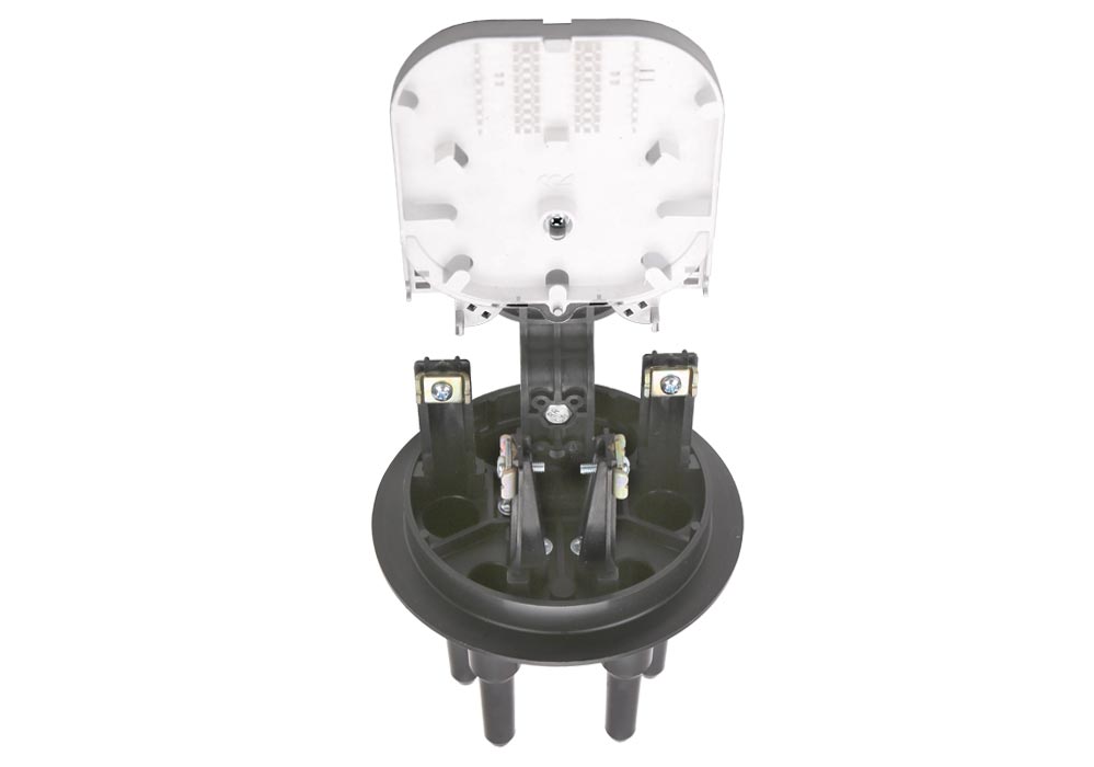 Способ герметизации вводов кабелей, осуществляется с помощью термоусаживаемых трубок ТУТ. Круглые патрубки на оголовнике муфты изначально герметичны и имеют ступенчатую форму с разными диаметрами. Срезая патрубок в определенном месте можно подобрать отверстие максимально близкое к диаметру вводимого кабеля. Таким образом, исключается излишнее натяжение ТУТ после усадки при вводе относительно тонких кабелей. Все патрубки муфты оснащены также индивидуальными узлами крепления ЦСЭ.