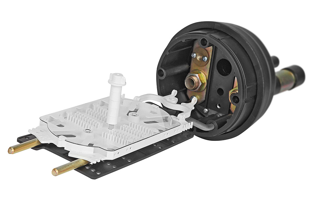 Ввод, крепление ЦСЭ и герметизация вводов кабелей осуществляется с помощью специальных кабельных вводов. На оголовнике муфты установлена специальная изолирующая пластина, которая в сочетании со специальными вводами обеспечивает уникальные характеристики и возможности: