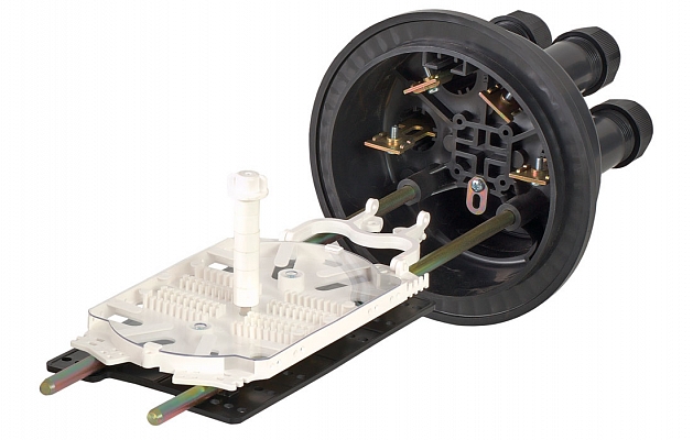 Ввод кабеля, крепление и герметизация осуществляется с помощью резьбовых фитингов, отлитых непосредственно на оголовнике муфты. Муфта имеет четыре круглых патрубка с фитингами и один овальный, герметизация вводимых в который кабелей осуществляется также механическим способом. Используя специальные комплекты для ввода в овальный патрубок можно ввести как два отдельных кабеля так и транзитный. Заглушка овального ввода выламывается при помощи молотка.