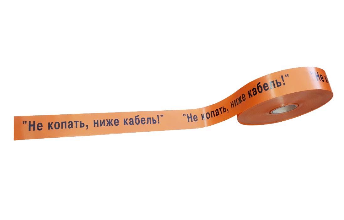 Изготовлена из полиэтилена оранжевого цвета. На ленту наносится непрерывная надпись чёрного цвета «НЕ КОПАТЬ, НИЖЕ КАБЕЛЬ.». Содержание надписи и размер шрифта могут изменяться по письменному согласованию или при заключении договора на поставку.