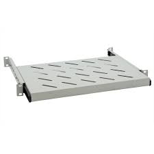 19" Выдвижная стационарная полка для шкафа глубиной 600мм. Статистическая распределенная нагрузка на полку не более 20 кг. За счет винтового крепления наружных уголков, возможна подгонка монтажного размера полки по глубине шкафа.