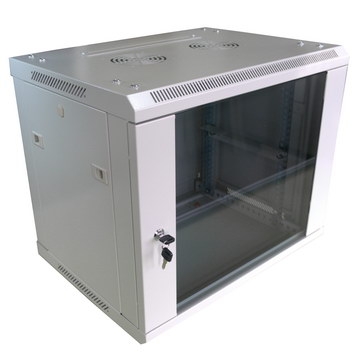 Боковые стенки - съемные, укомплектованы защелками, это обеспечивает легкий и удобный доступ к установленному в шкаф оборудованию. С задней стороны крыши и основания расположены 2 кабельных ввода. Для монтажа 19" навесного оборудования используются пара вертикальных металлических профилей. В стандартную комплектацию входят два уголка для поддержки оборудования. На задней стенке шкафа есть отверстия для крепления к стене. Покрытие - порошковая окраска с предварительным фосфатированием. Степень пылевлагозащищенности IP20.